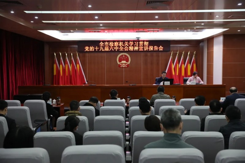 党的十九届六中全会召开以来,全市检察机关掀起了学习宣传贯彻全会精神的热潮。为帮助全体干警进一步学懂弄通做实党的十九届六中全会精神,12月20日,市检察院举办了全市检察机关学习贯彻党的十九届六中全会精神宣讲报告会,邀请市委党校副校长、副教授李志春作专题辅导。市检察院党组成员、政治部主任金芃主持报告会。