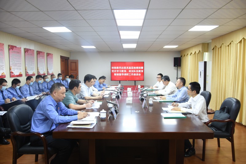 林贻影检察长听取了梅州市检察机关党史学习教育、政法队伍教育整顿工作情况以及蕉岭县检察院工作情况汇报。他充分肯定梅州市检察机关党史学习教育、政法队伍教育整顿工作,认为蕉岭县检察院紧紧围绕县委和上级检察机关的决策部署,思路清晰,作风务实,成效明显。对下一步工作,林贻影检察长强调,要坚持党对检察工作的绝对领导,以高度的政治自觉、法治自觉、检察自觉,扎实推进党史学习教育和政法队伍教育整顿走深走实,抓实全面从严治检,锻造“四个铁一般”的检察铁军。要抓实基层检察院建设主体责任,抓实新时代法律监督工作,以求极致的理念办好每一起案件,依法平等保护民营经济,守护好梅州绿水青山,全面提升工作质效和服务水平,为经济社会发展保驾护航,以优异的检察业绩迎接建党100周年!